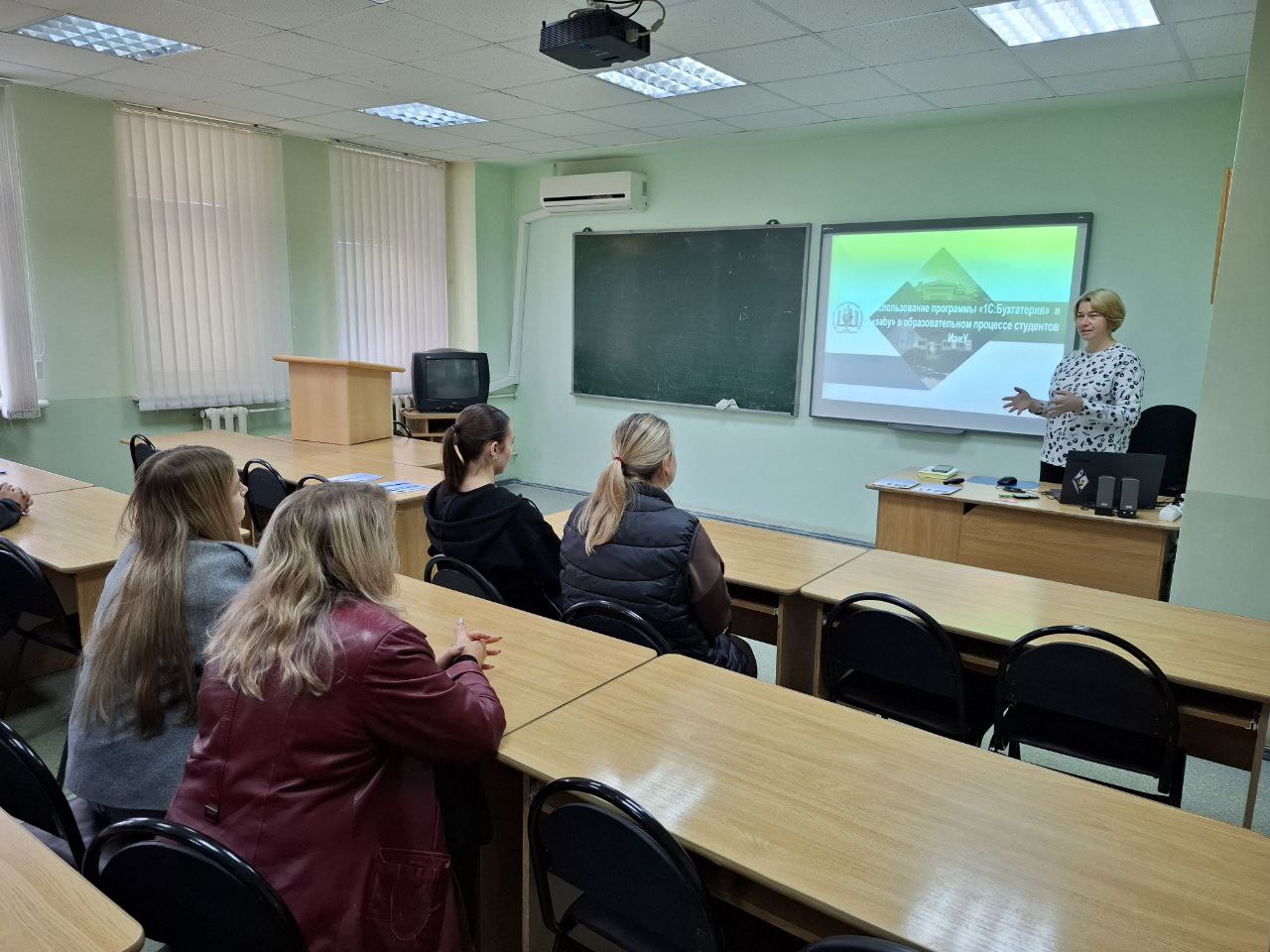 Доцент кафедры — Малахова Ю.В. рассказала об особенностях использования программных продуктов «1С: бухгалтерия» и «Saby» в учебном процессе студентов Института Экономики и управления.