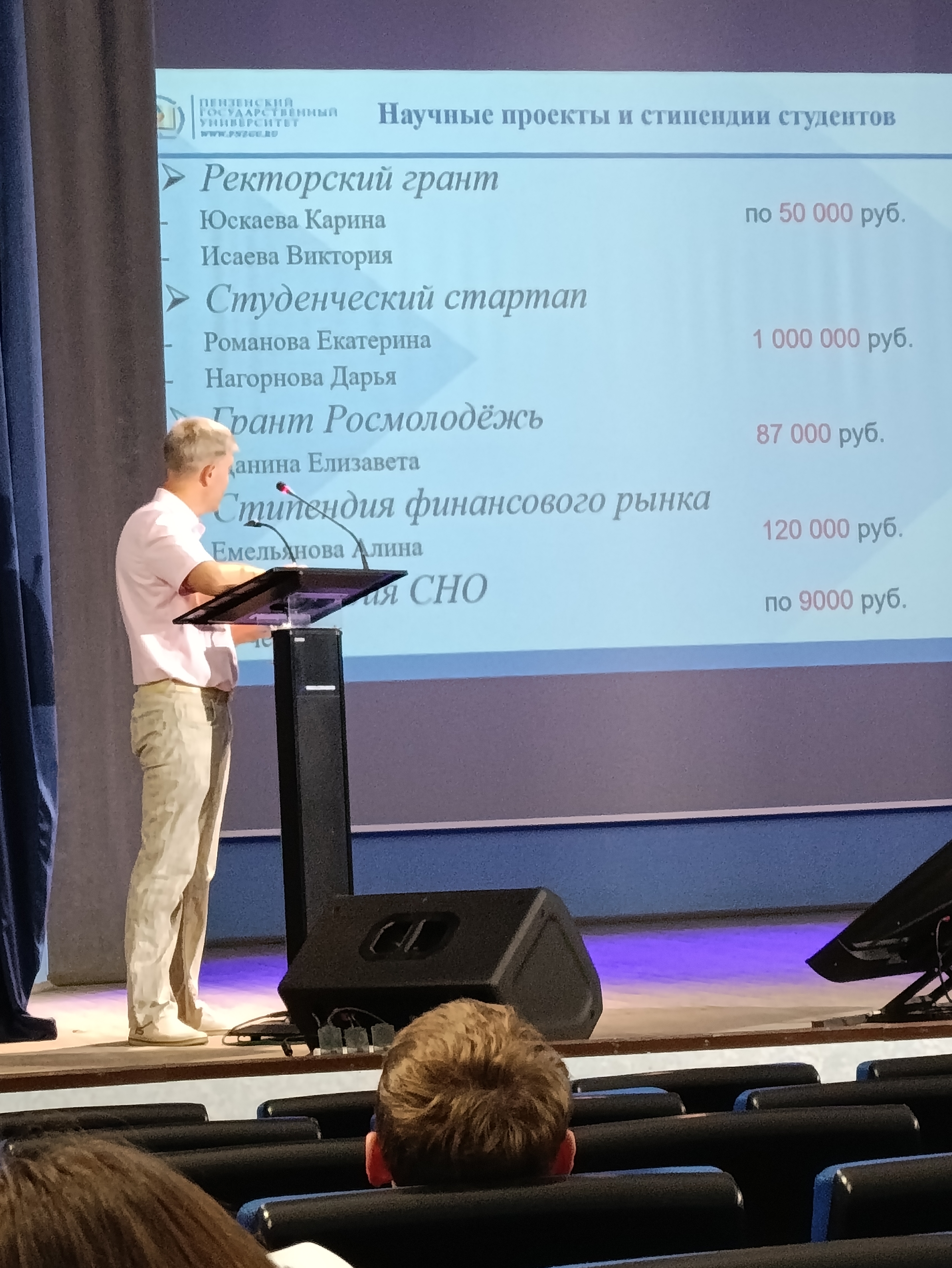 Заместитель директора ИЭиУ по научной работе Самыгин Д.Ю. представил презентацию и познакомил первокурсников с организацией научно-исследовательской работы студентов в ИЭиУ. Денис Юрьевич в своем выступление акцентировал внимание студентов на научных проектах и стипендиях для занимающихся НИРС.